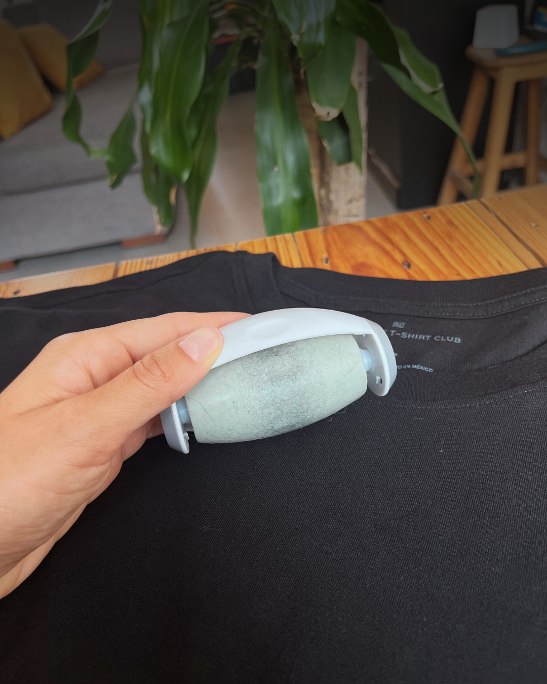 Suma un quita pelusas a tu compra y extiende la vida de tus playeras negras.